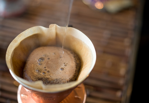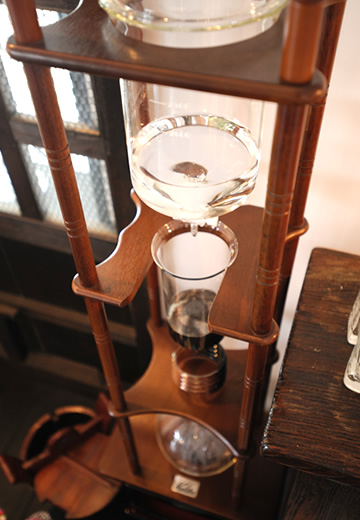 珈琲はオーダーを受けてから豆を挽き、銅製のドリッパーを通して薫り高く抽出。